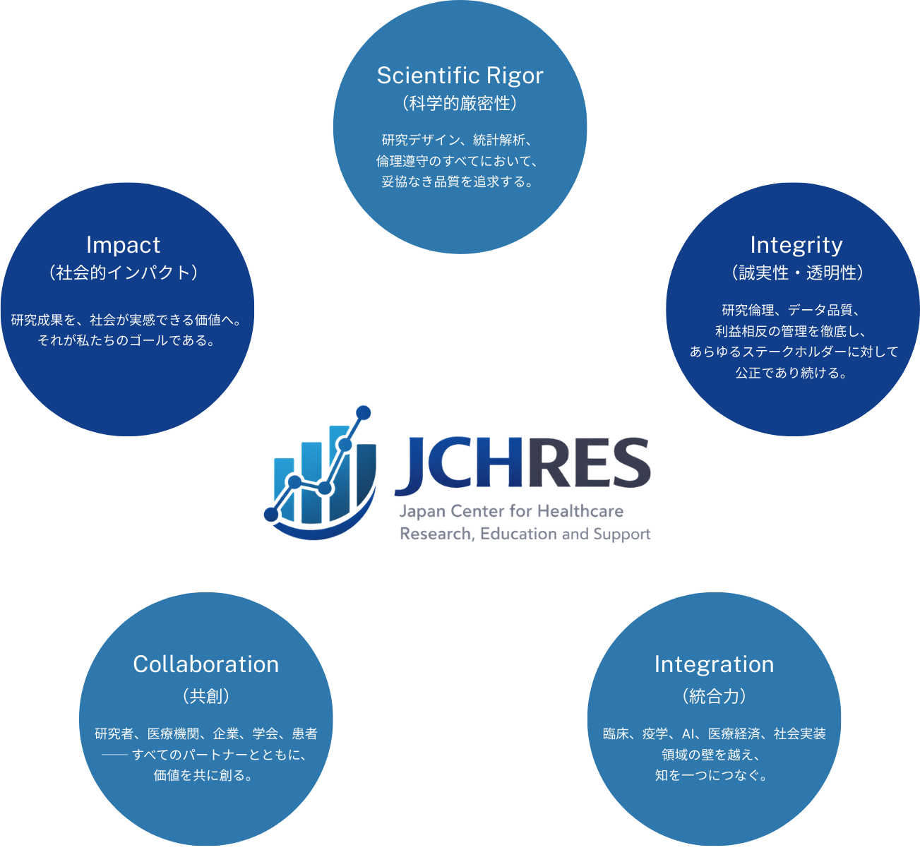 | 法人名 | 一般社団法人ヘルスケア研究・教育支援機構 Japan Center for Healthcare Research, Education and Support (JCHRES:ジェークレス) |